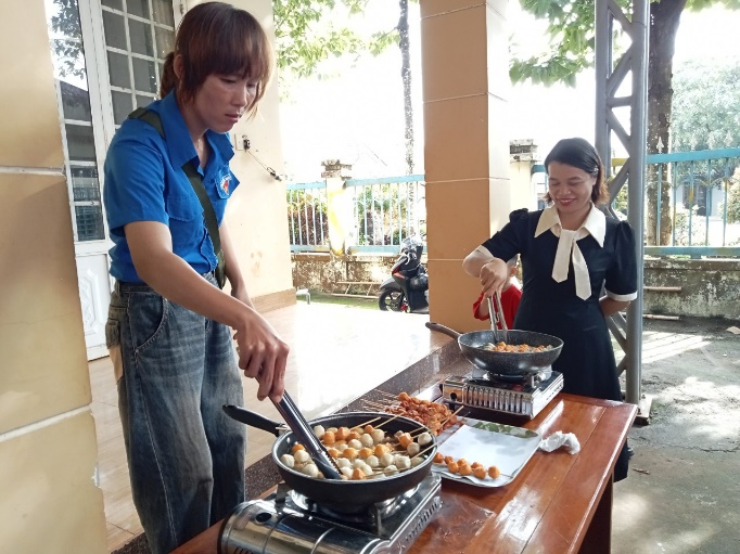 Đoàn viên phát quà cho trẻ em tham gia Lễ Khai mạc hè